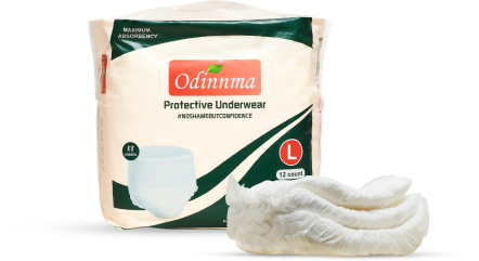 Odinnma adult pull-up protective underwear offers ultra absorbent core for maximum absorbency that is skin friendly for all day comfort protection for users experiencing bowel and bladder leaks. Our incontinence product is designed with plant-based materials, dual leakage protection, wetness indicator, and soft fabric made in the color white that are unisex